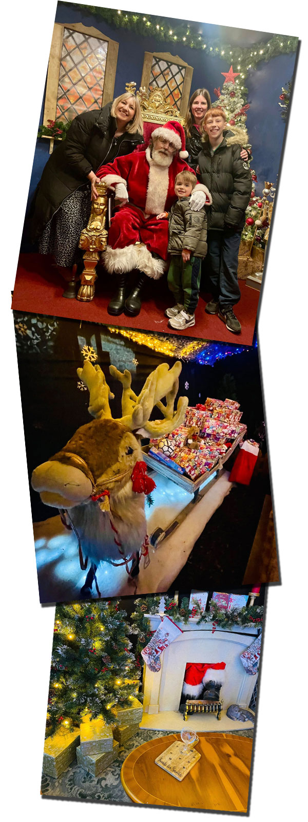 in his cabin, sit by the fireside and discuss your Christmas wishes, take as many photos as you want and then on to the toy shop to choose a present from anything on the shelves!